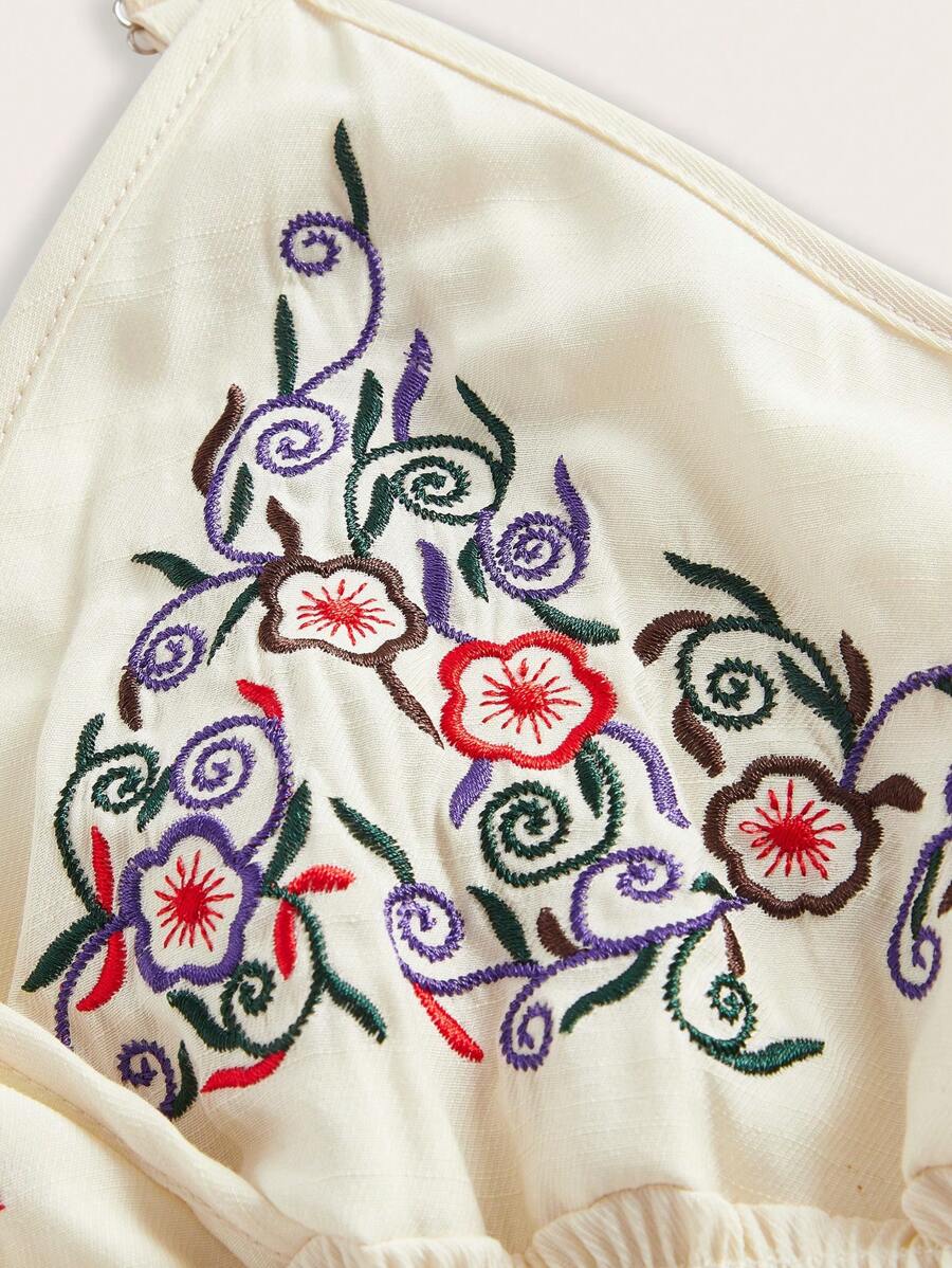 Floral Embroidery Contrast Lace Cami Dress