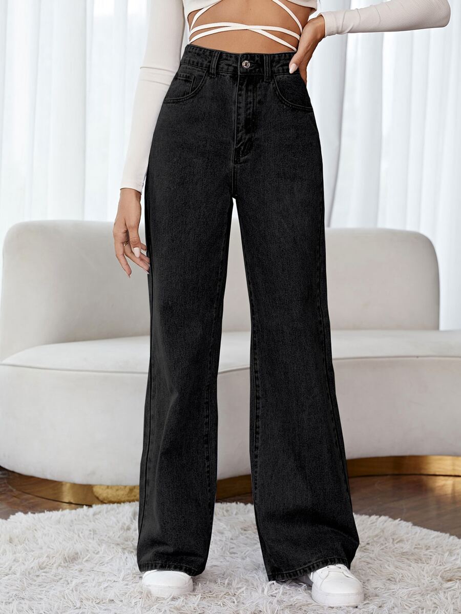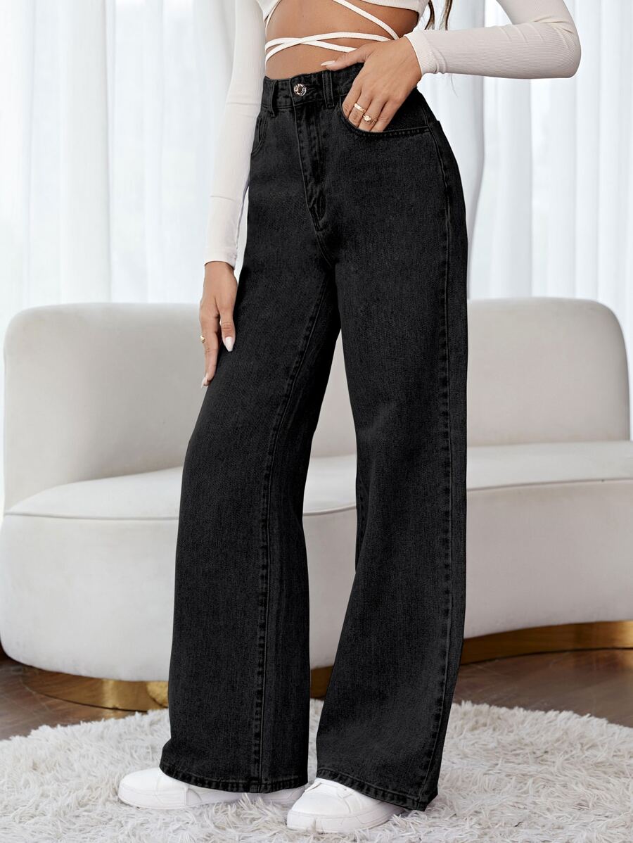 Floral Embroidery Wide Leg Jeans