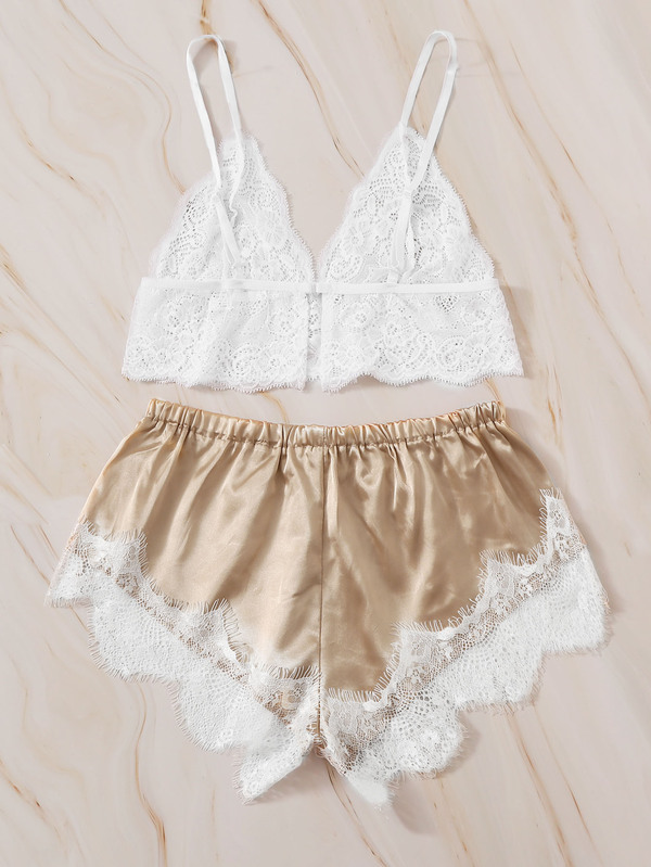 Floral Lace Bralette With Satin Shorts