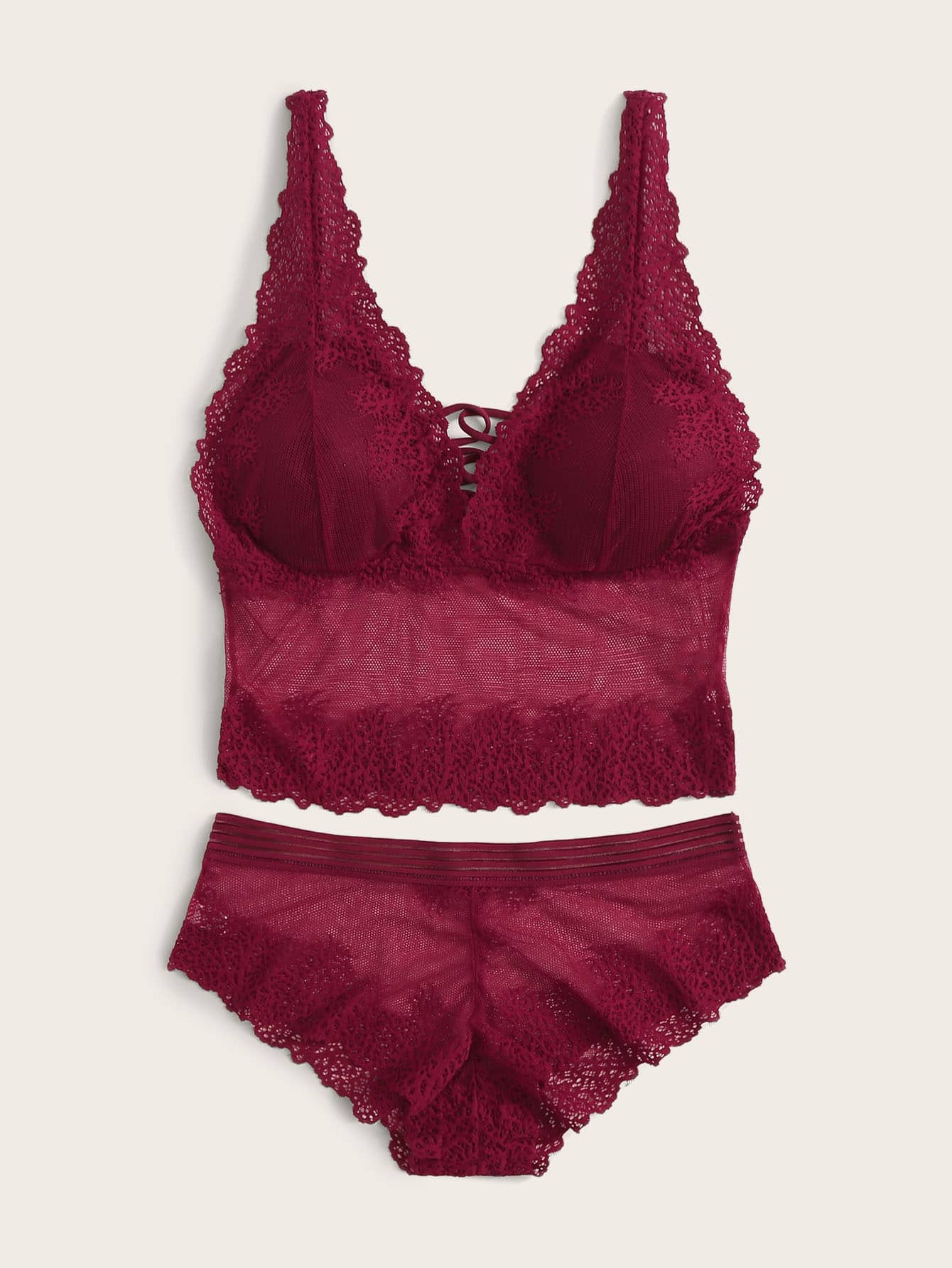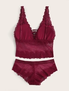 Floral Lace Criss Cross Lingerie Set