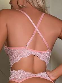 Floral Lace Cut Out Criss Cross Teddy Bodysuit