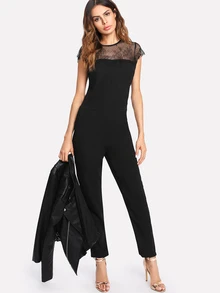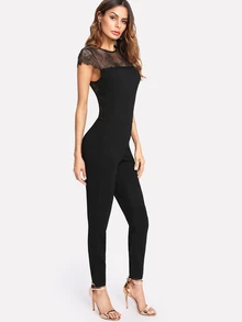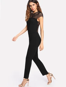 Floral Lace Shoulder Tailored Jumpsuit