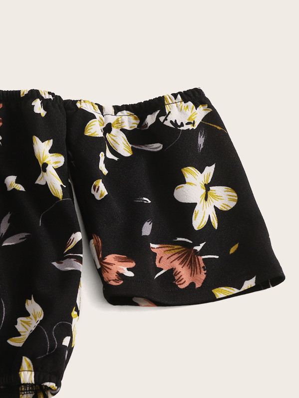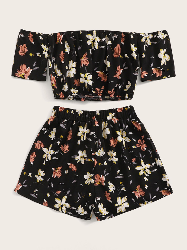 Floral Off-the-Shoulder Crop Top & Shorts Set