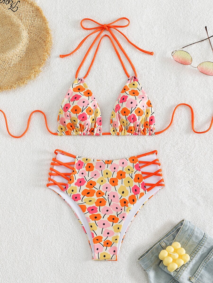 Floral Print Halter Triangle Summer Beach Bikini Set