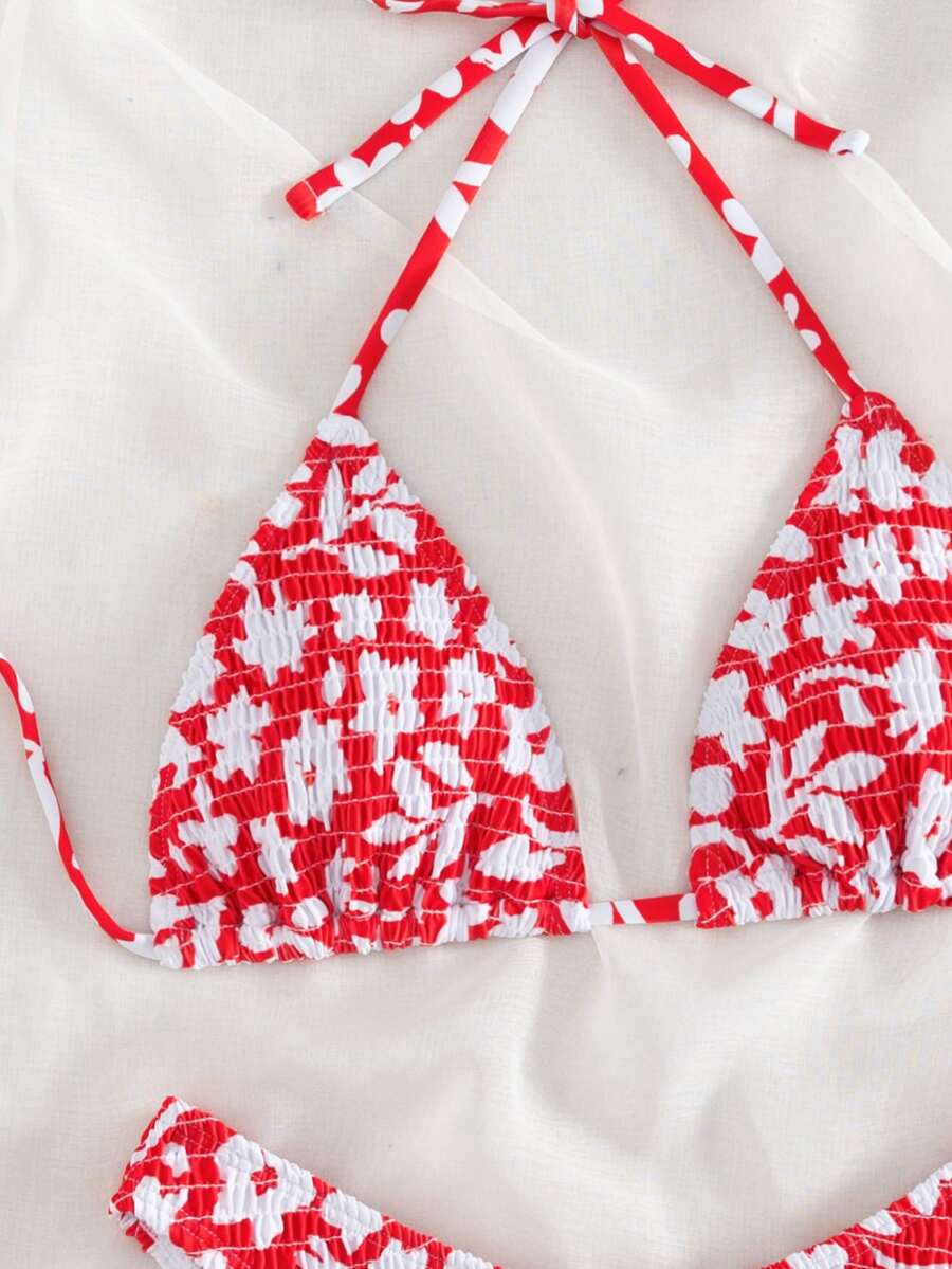 Floral Print Halter Triangle Summer Beach Bikini Set