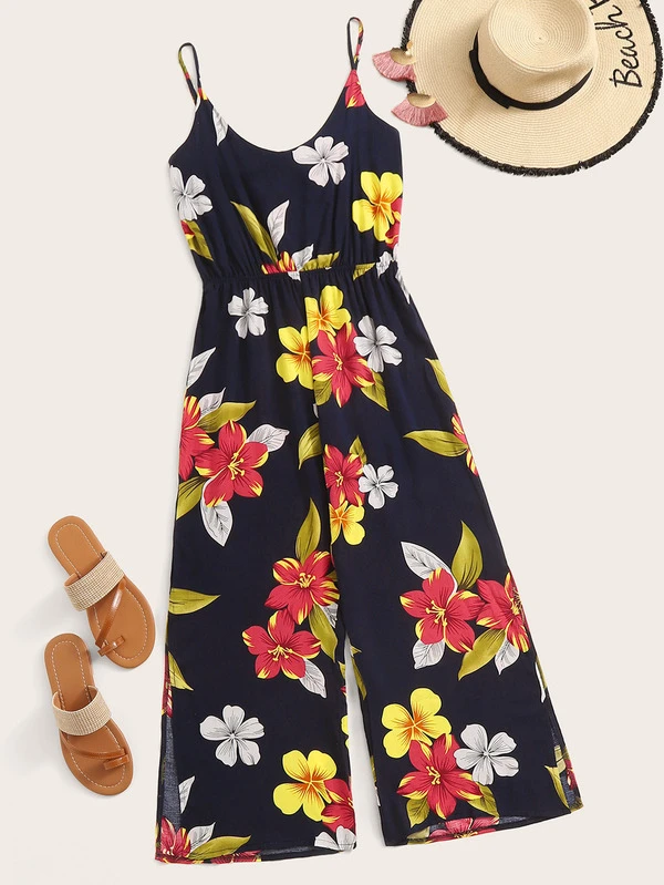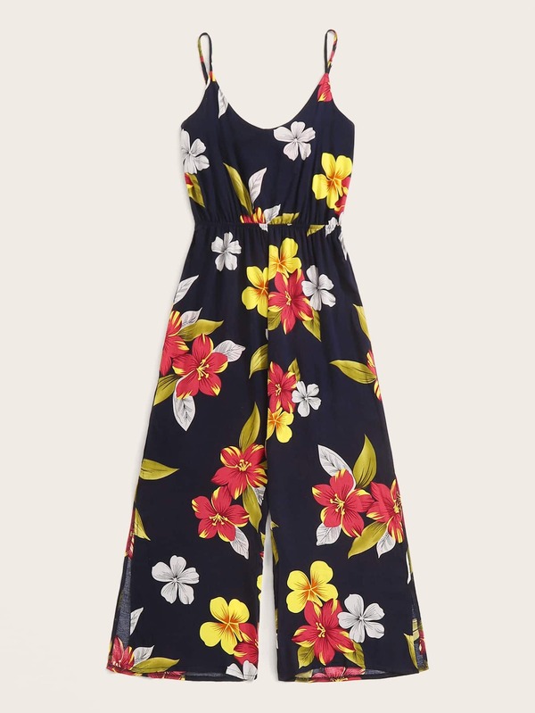 Floral Print Split Side Cami Jumpsuit