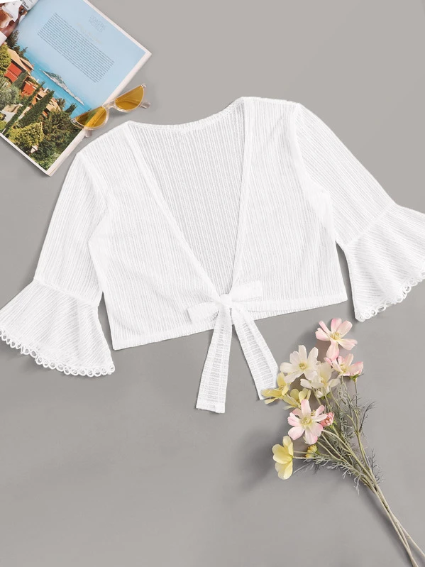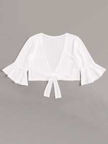 Flounce Sleeve Tie Front Plunging Neck Blouse