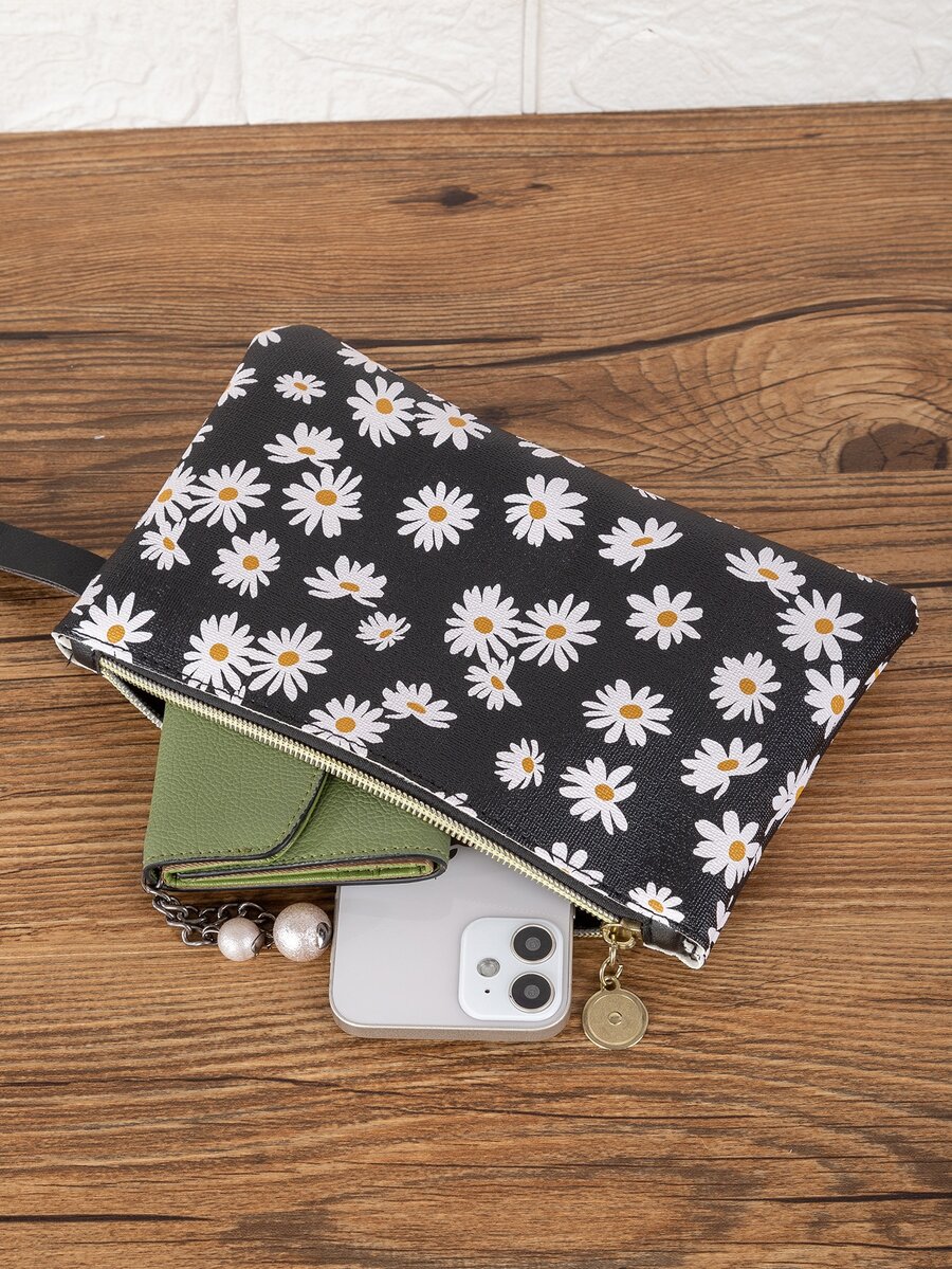 Flower Graphic Clutch Bag