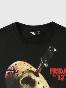 Friday the 13th X ROMWE Men's Casual Mask Print Round Neck Short Sleeve T-Shirt, Summer