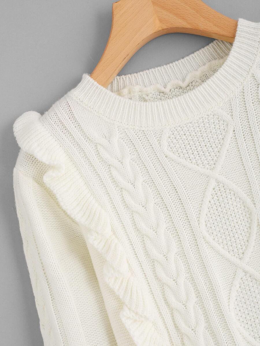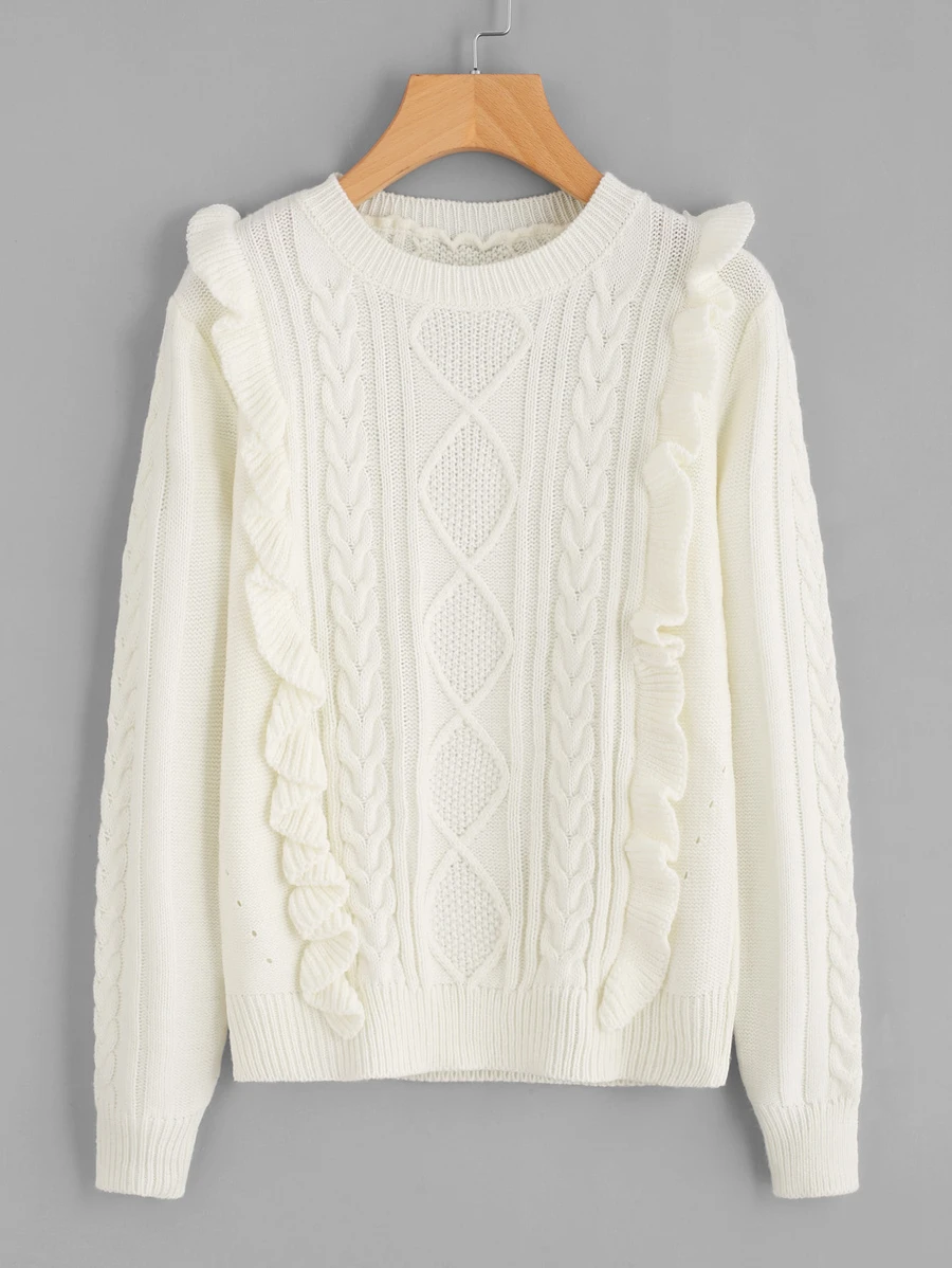 Frill Front Mixed Knit Jumper