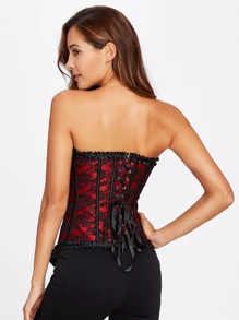 Frill Trim Lace Up Back Corset Set