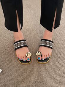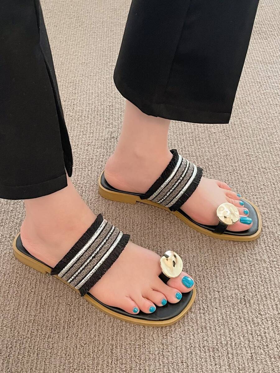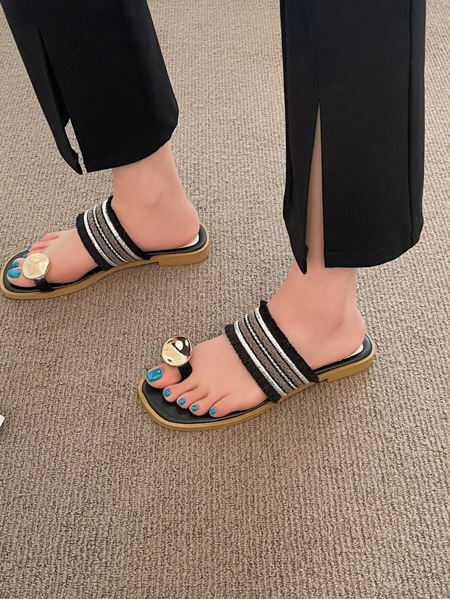 Fringe Detail Flat Thong Sandals
