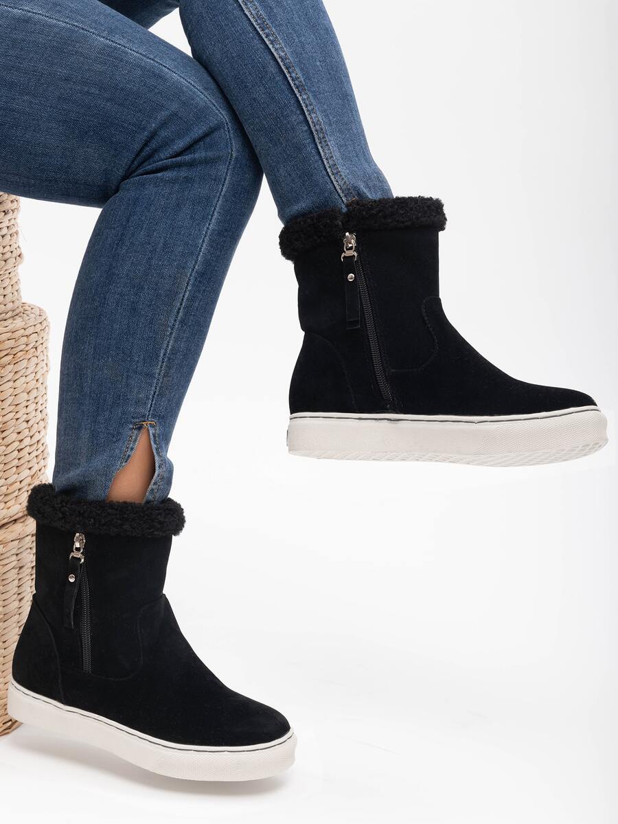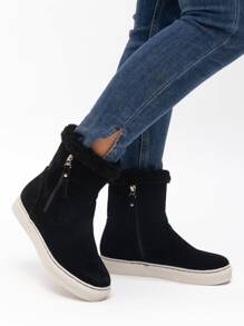 Fuzzy Trim Ankle Boots