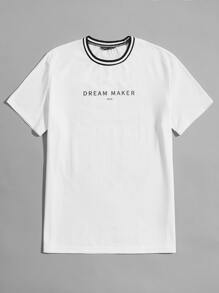 GENTILAND Men Striped Collar Letter Graphic Tee