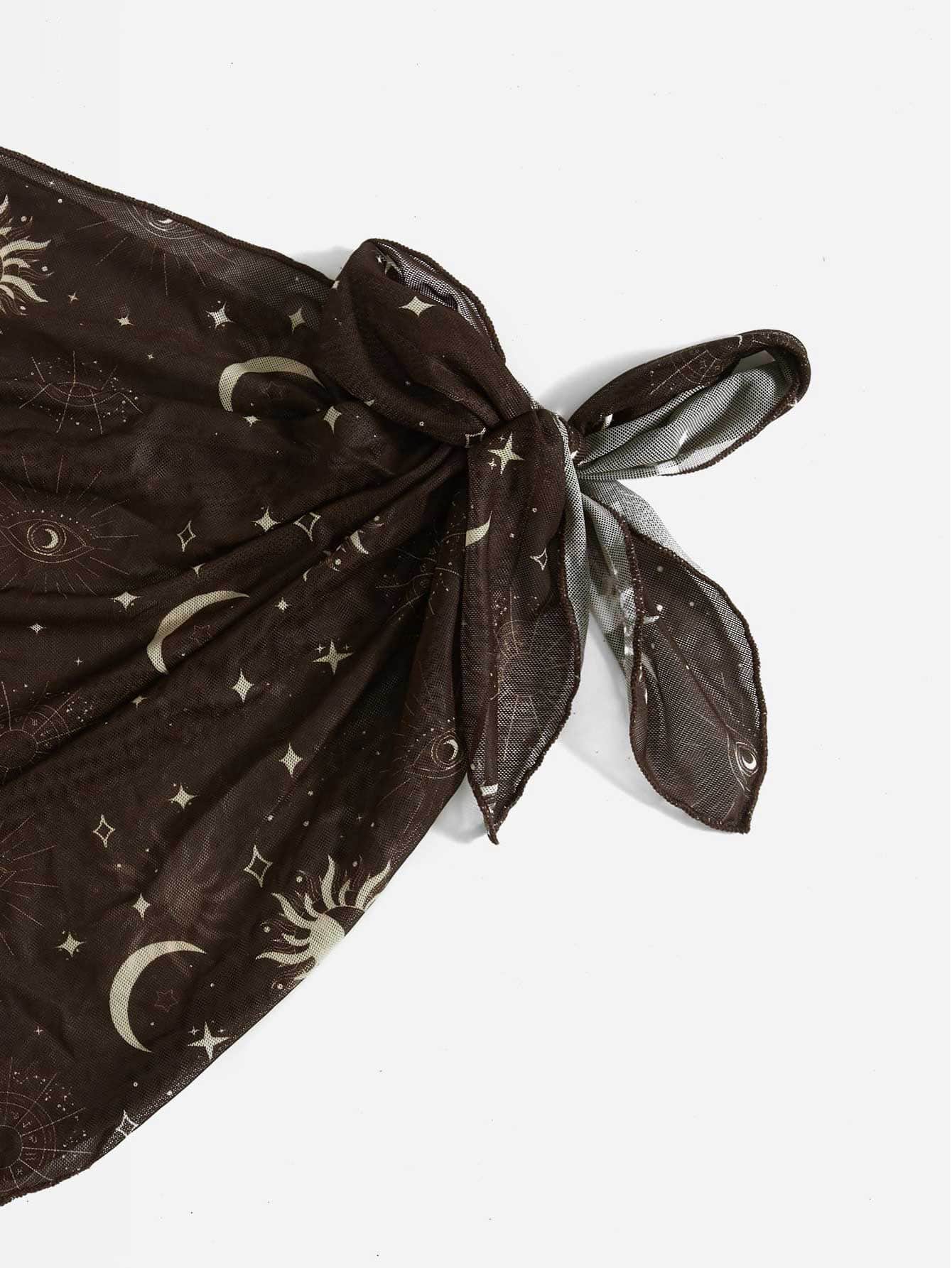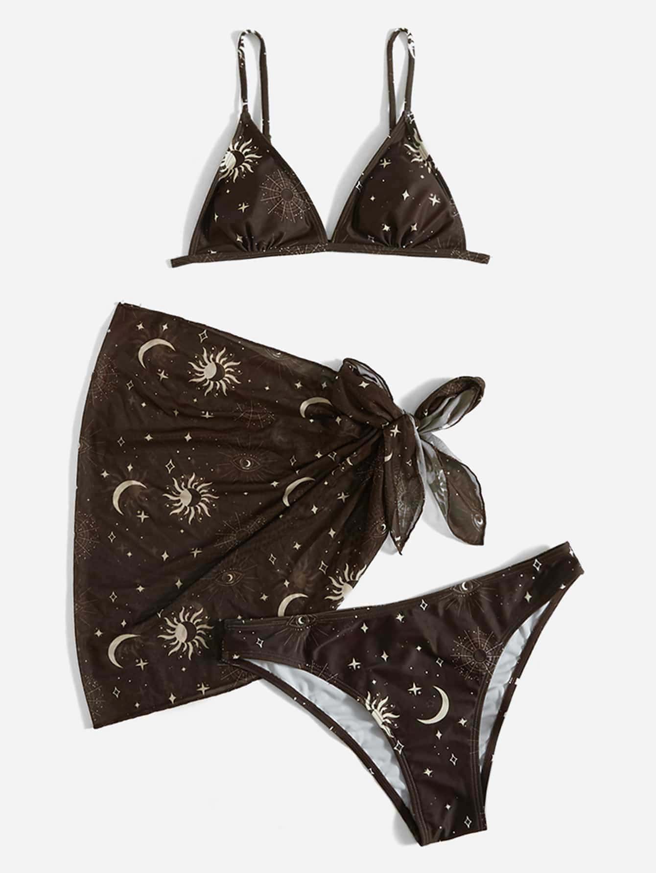 Galaxy Print Bikini Set Triangle Bra Top & Bikini Bottom & Summer Beach Vacation Skirt 3 Pieces Bathing Suit