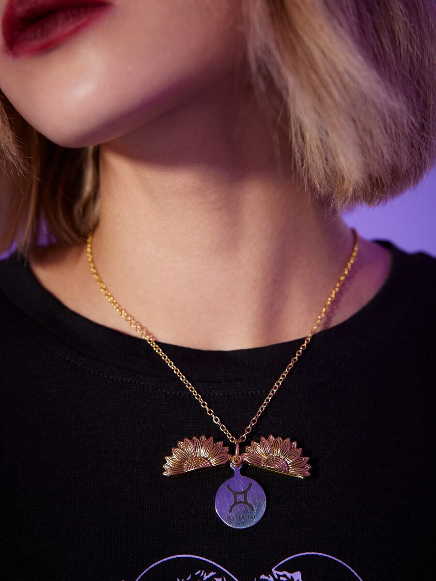 Gemini Sunflower Decor Pendant Necklace