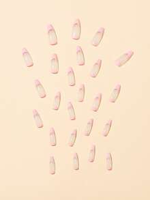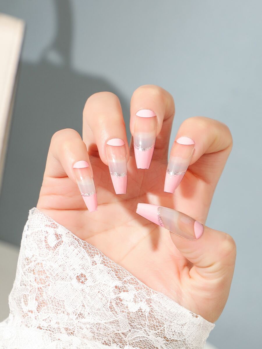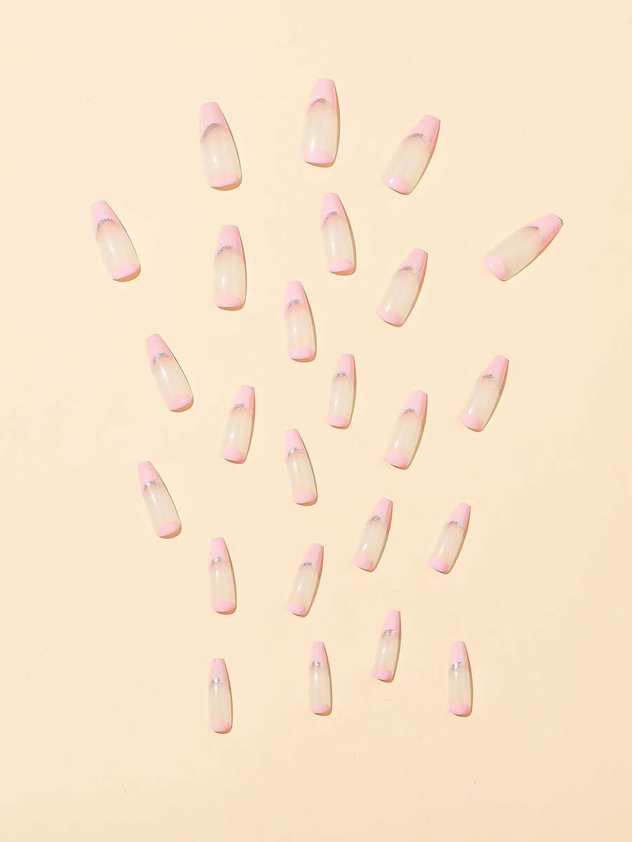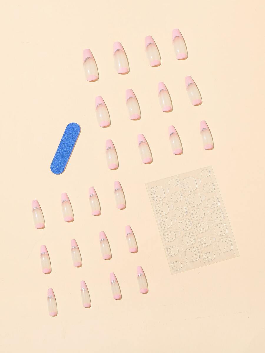 Get Glamorous with 24pcs Extra Long Coffin French Style Glitter Fake Nail & 1sheet Tape & 1pc Nail File