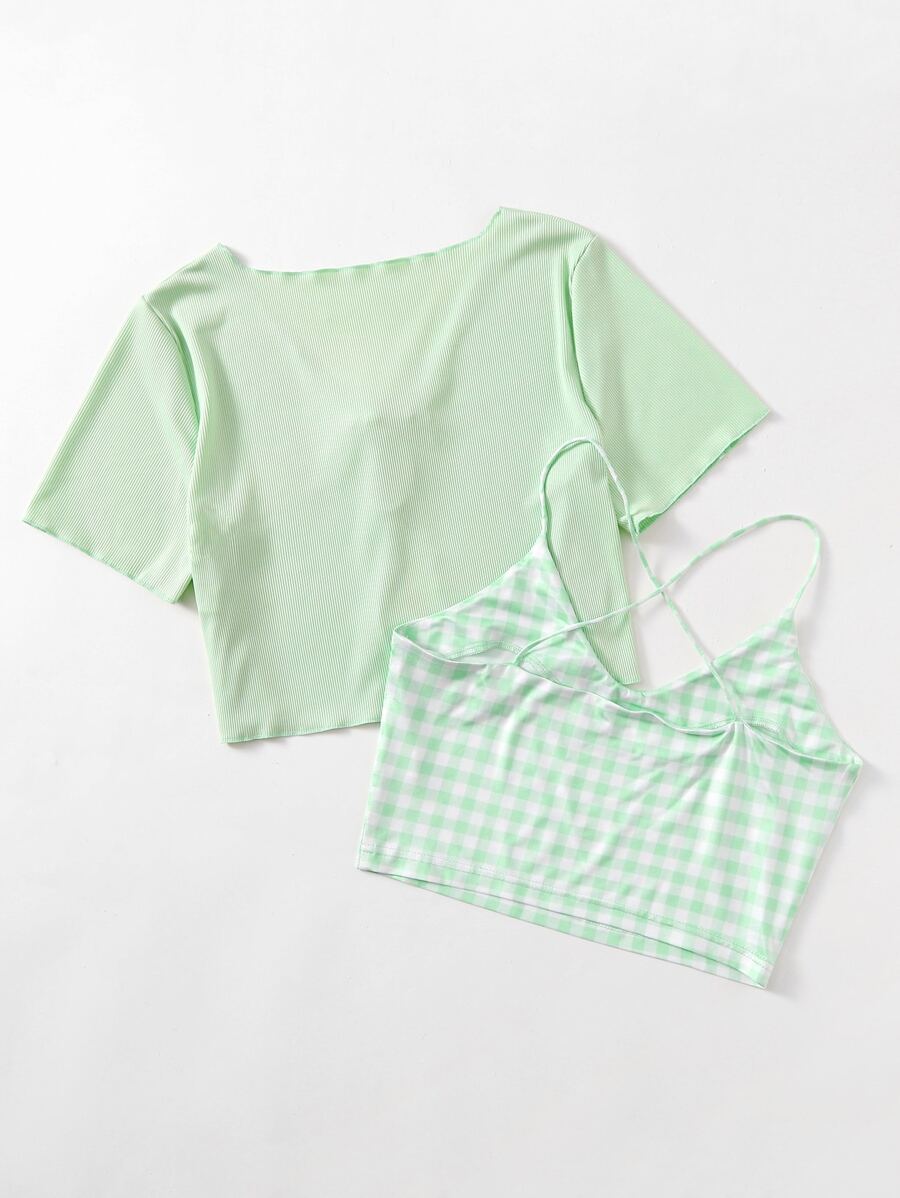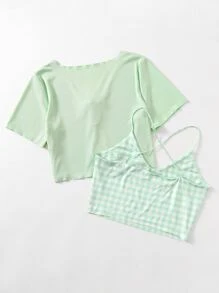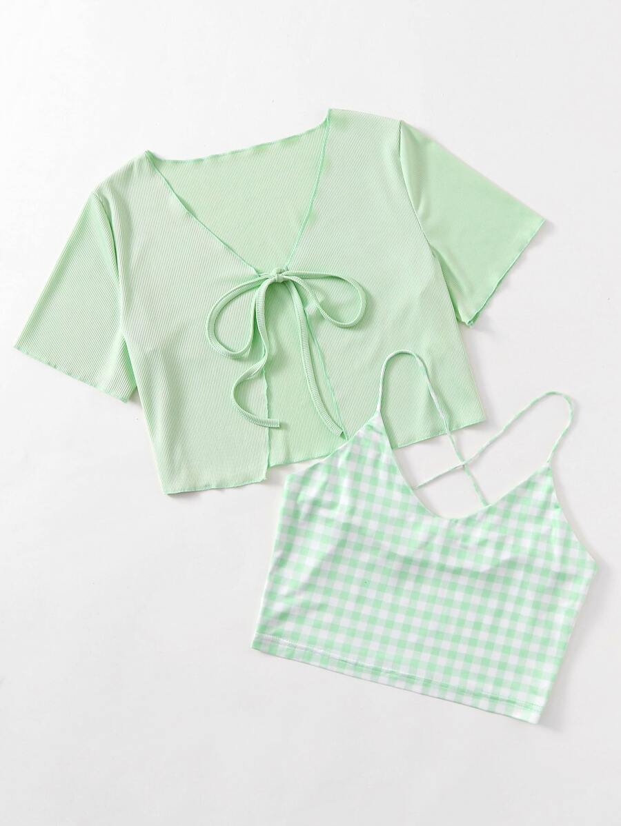 Gingham Crop Cami & Tie Front Crop Top