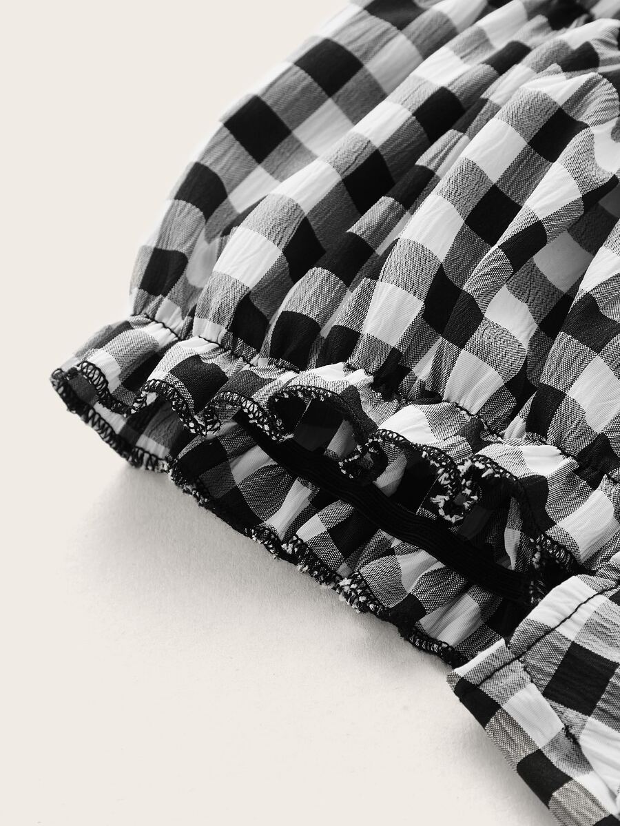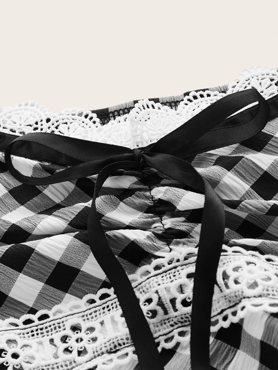 Gingham Guipure Lace Blouse