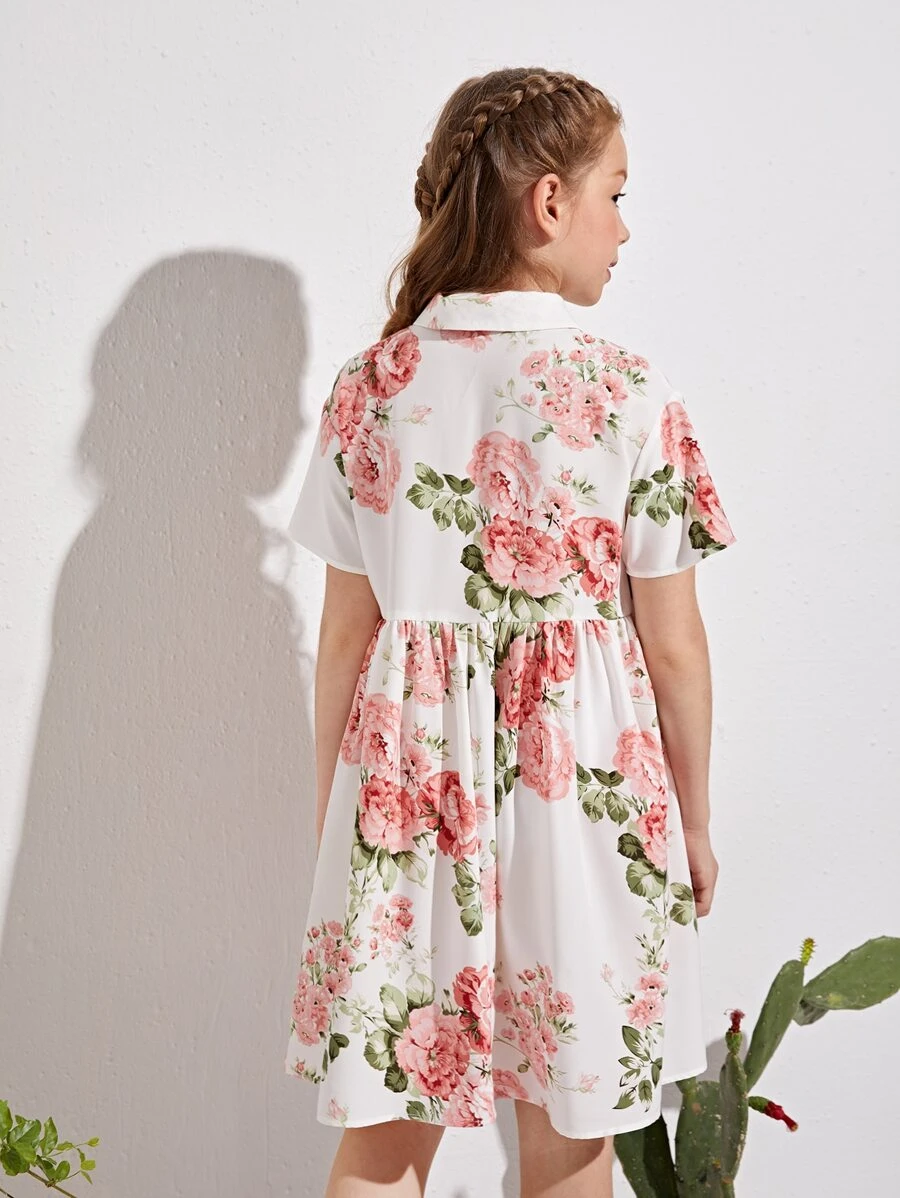 Girls Allover Floral Print Shirt Dress