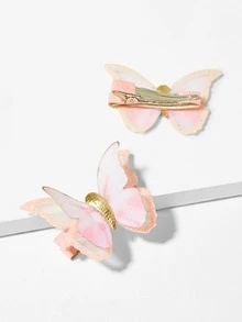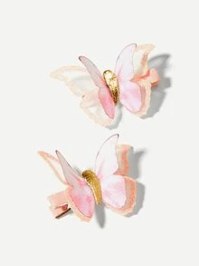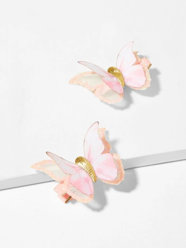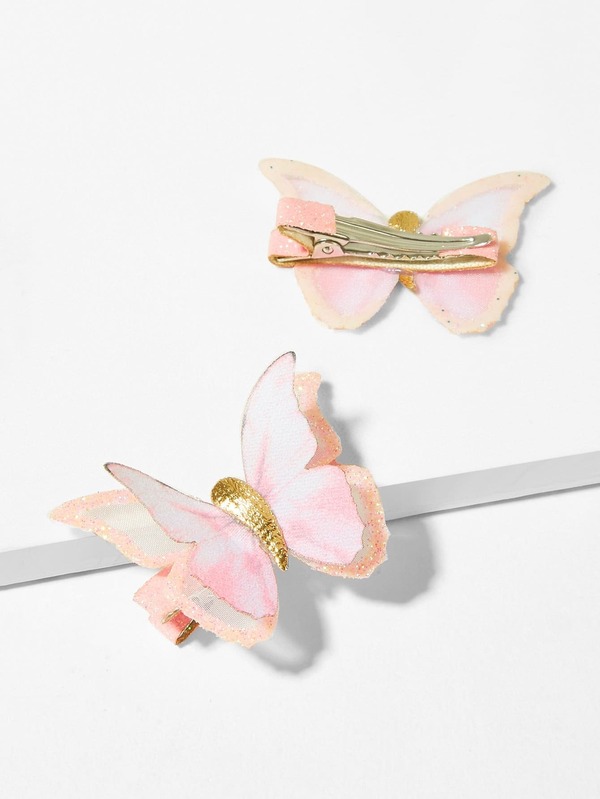 Girls Butterfly Decorated Glitter Hair Clip 2pcs