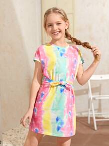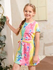 Girls Tie Front Tie Dye Dress