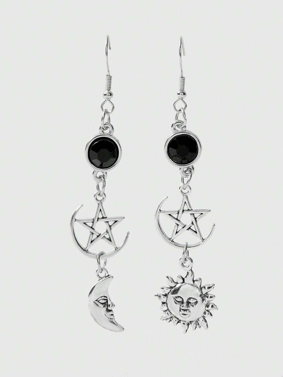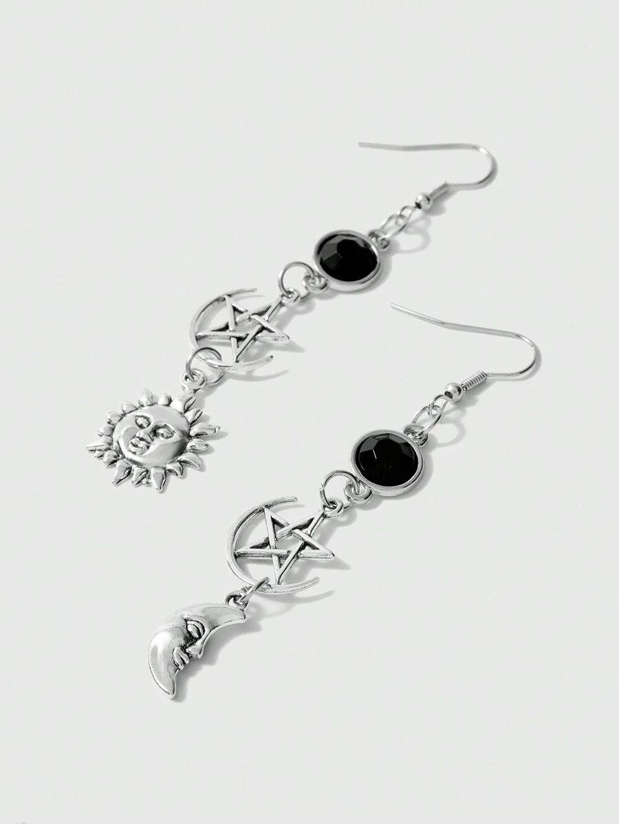 Goth 1 Pair Halloween Punk Vintage Boho Sun Moon Dangle Earrings