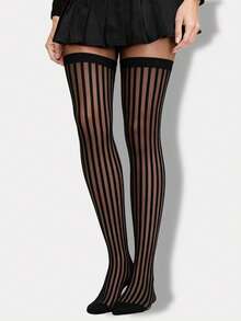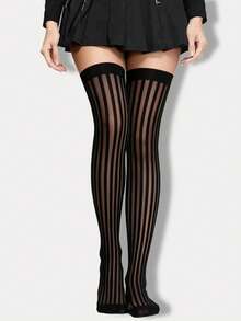 Goth 1 Pair High Elasticity Black Thigh High Socks For Women