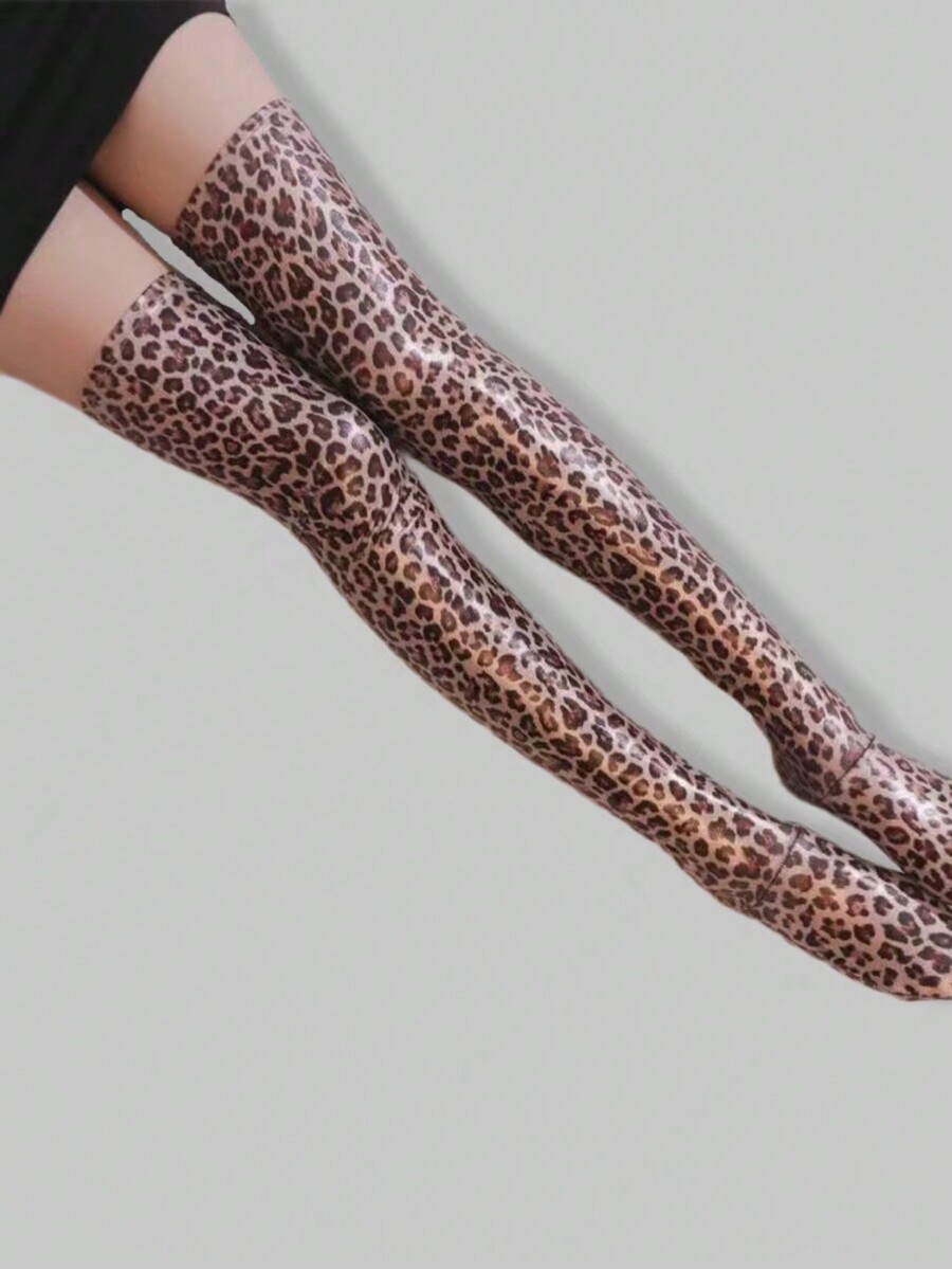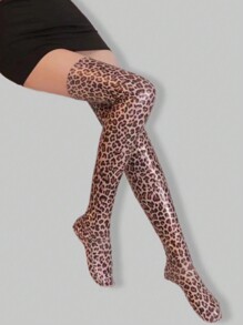 Goth 1 Pair Leopard Print Leather Women's Over-Knee Socks