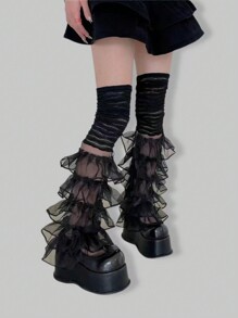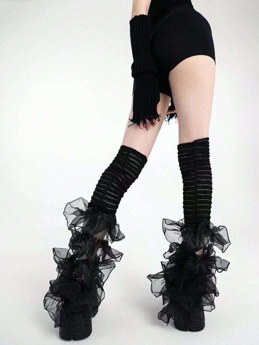 Goth 1 Pair Of Lace Trim Leg Warmers With Piled Cuffs