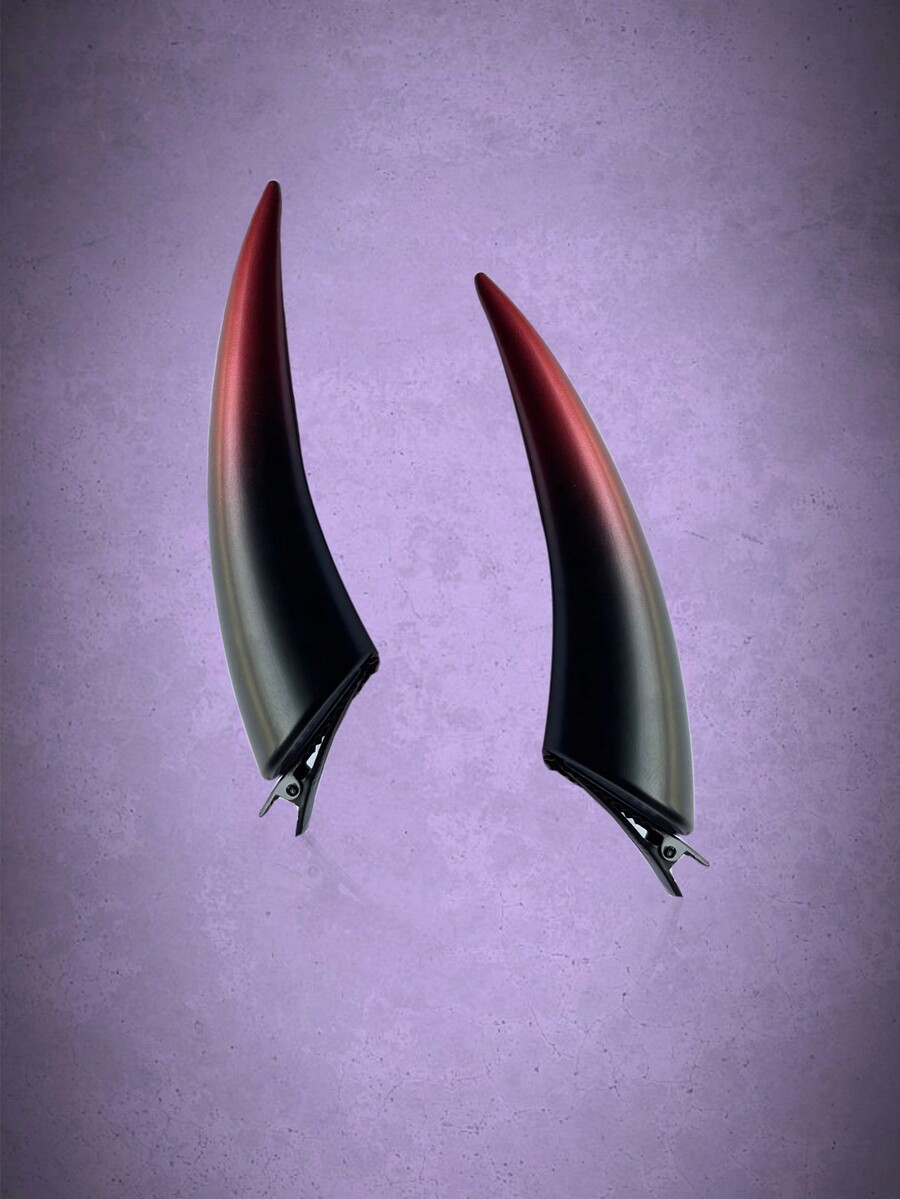 Goth 1 Pair Red & Black Devil Horns Hair Clips, Suitable For Stage Decor, Halloween & Party