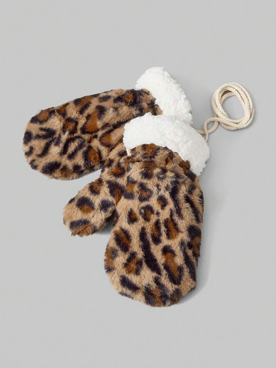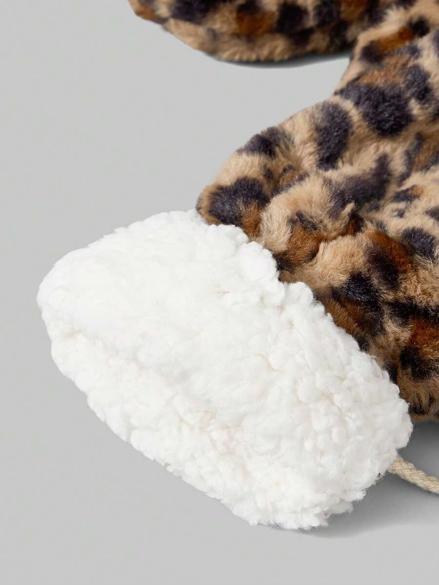 Goth 1 Pair Y2K Retro Furry Camel Leopard Print Fingerless Gloves With Drawstring, Fashionable & Minimalist, Suitable For Daily Wear, Parties, Gatherings, Autumn/Winter, Halloween, Christmas