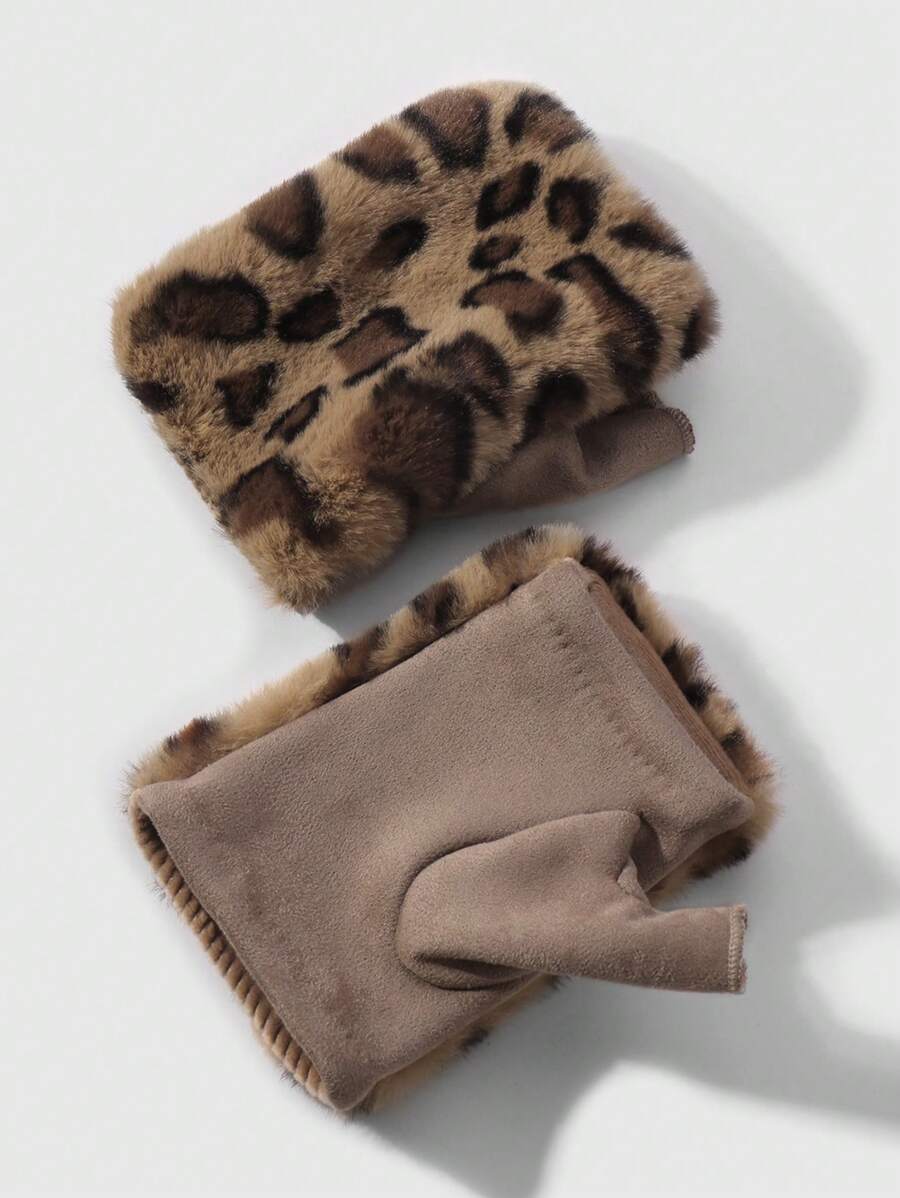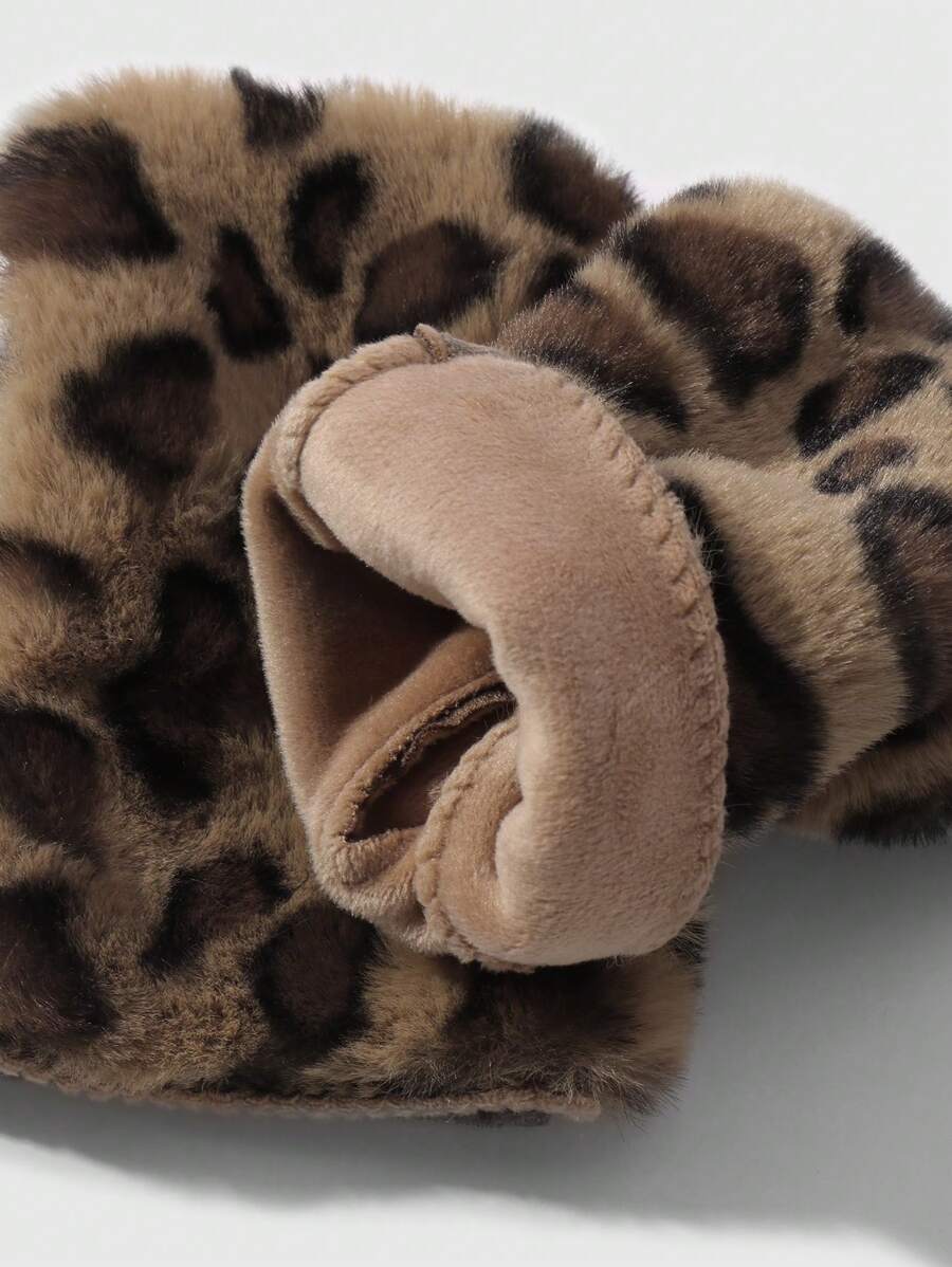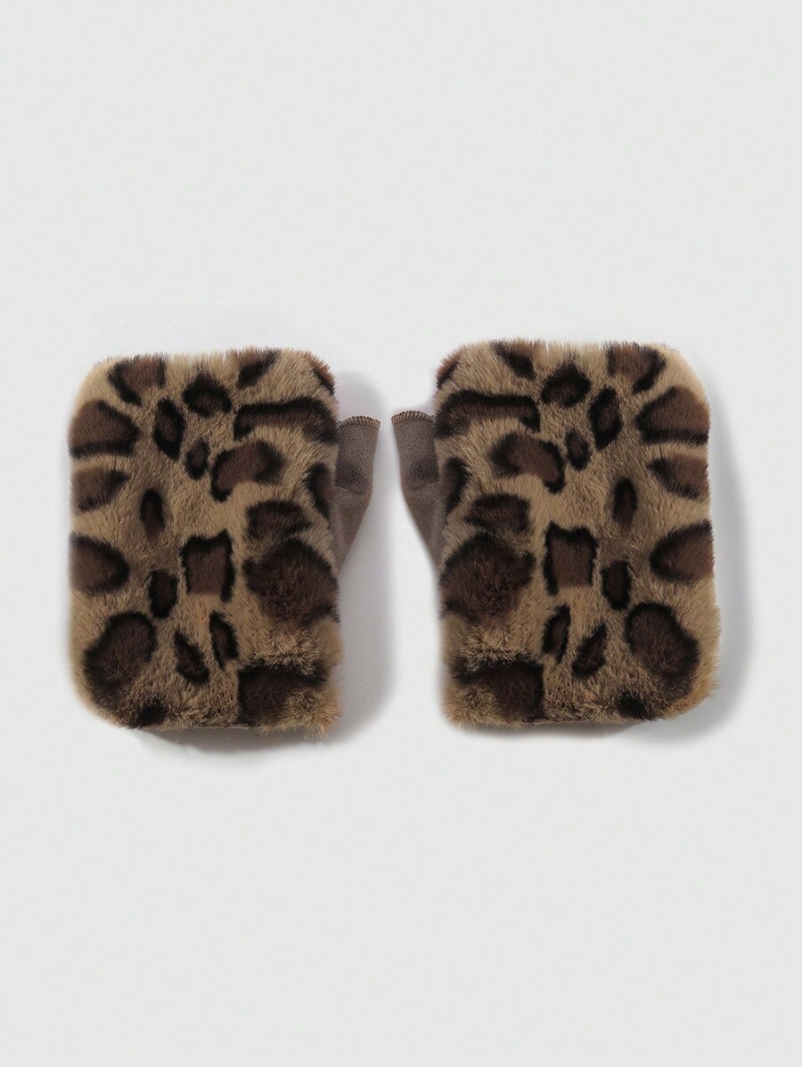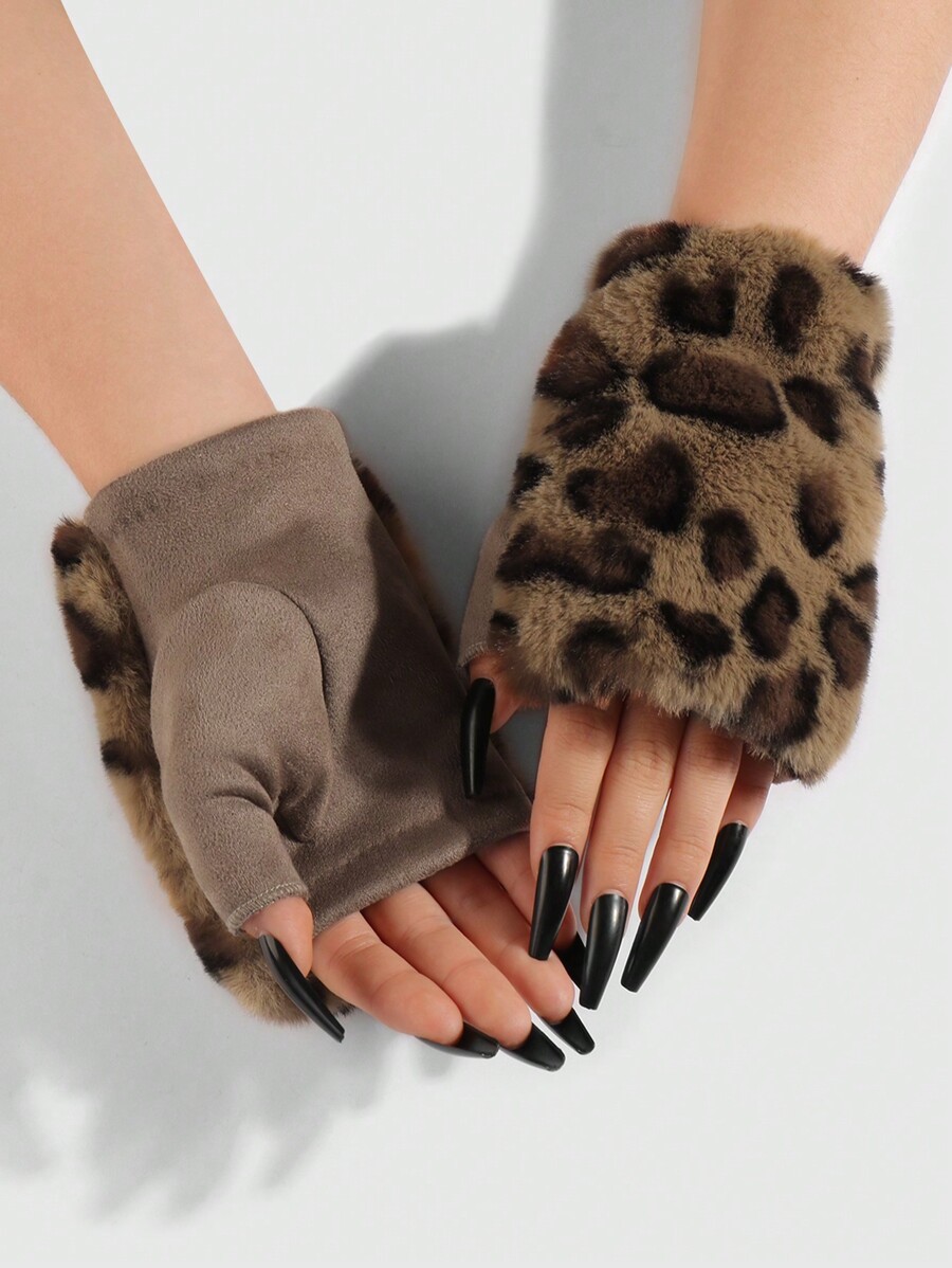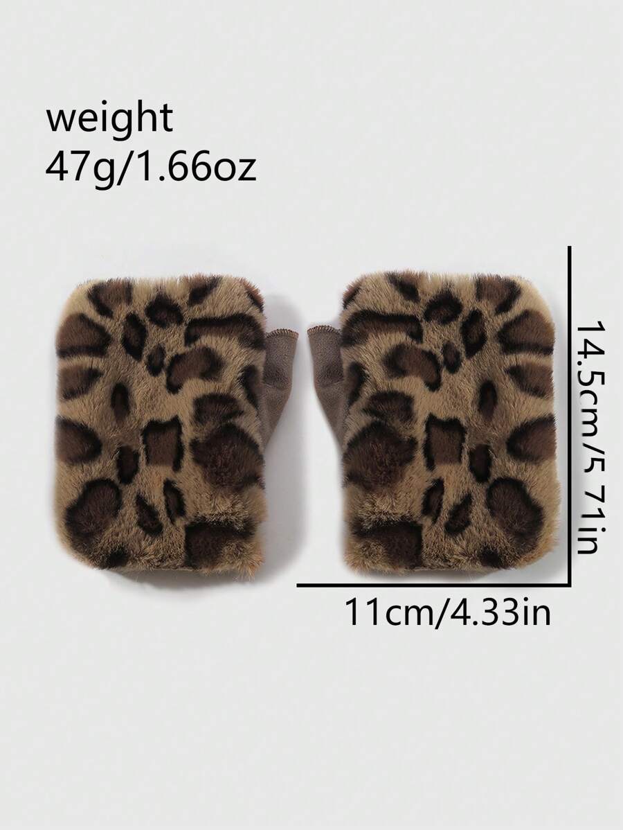 Goth 1 Pair Y2K Vintage Chic Leopard Fluffy Fingerless Touchscreen Gloves, Warm And Stylish For Winter Women, Comes In Gift Packaging