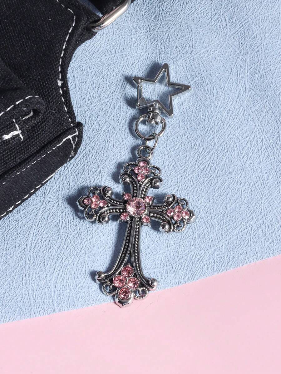 1 Pc Y2K Gothic Cross Bag Charm & Key Chain, Bag Accessory For Valentine's Day, Halloween