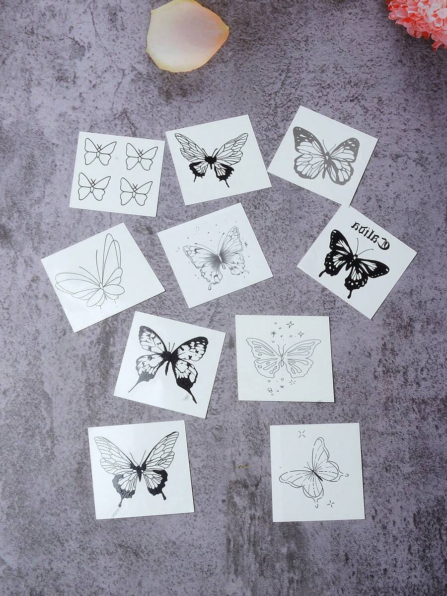 Goth 10pcs Butterfly Temporary Tattoo Sticker