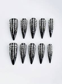Goth 10pcs Dark Punk Style Nail Rhinestone Stickers + 3 Sheets Double-Sided Adhesive, Handmade Rhinestone Nail Art, Removable Y2K Hand-Painted Nail Stickers, High-Quality Reusable, Suitable For Parties, Dances & Daily Wear