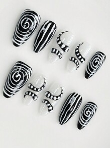10pcs High-Quality Handmade Fake Nails With Dark Style 3D Snake Design + 3pcs Double-Sided Adhesive, Y2K Gothic Style Nail Art, Removable Hand-Drawn Nail Stickers, Suitable For Festivals, Parties, Dance Performances And Daily Wear