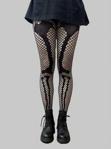 Goth 1pair Bone Pattern Fishnet Stockings, Casual Everyday Wear