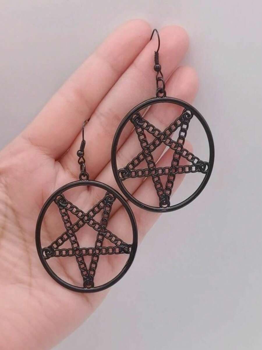 Goth 1pair Fashion Zinc Alloy Star Decor Round Drop Earrings For Women For Daily Decoration