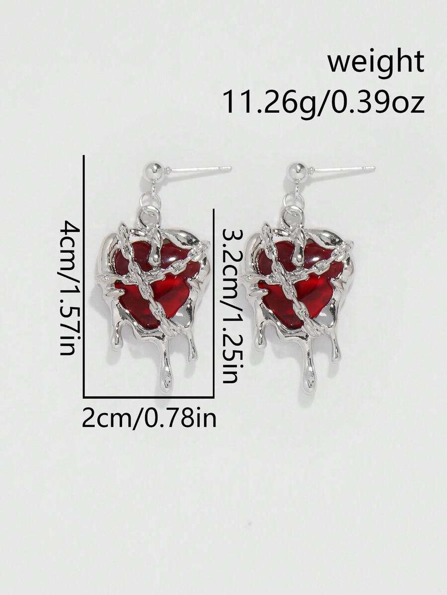 1pair Gothic Style Heart-Shaped Earrings Set With Imprisoned Transparent Ruby