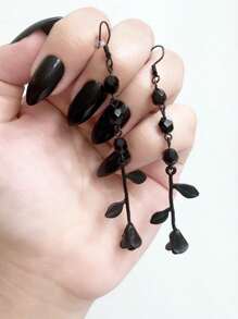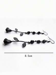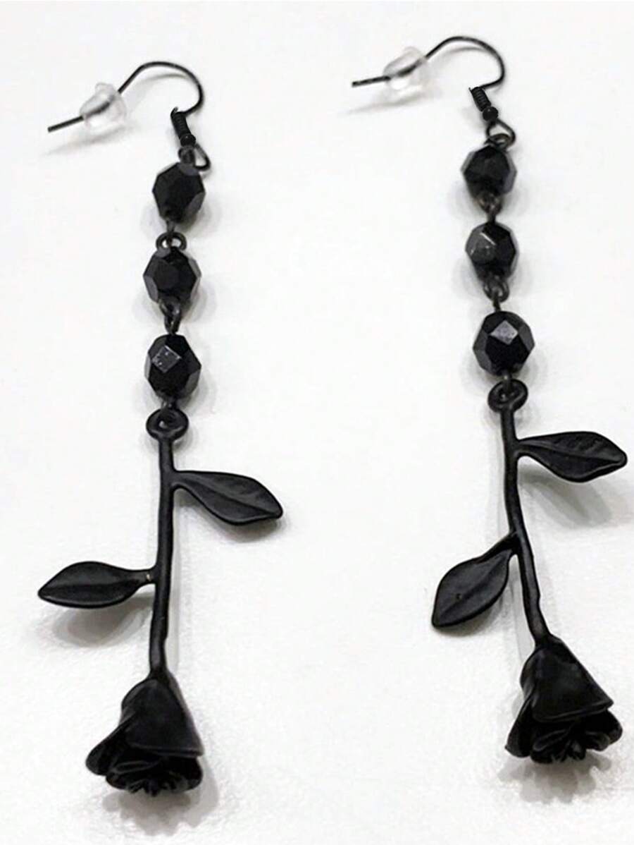 1pair Gothic Upside-Down Black Rose Drop Earrings