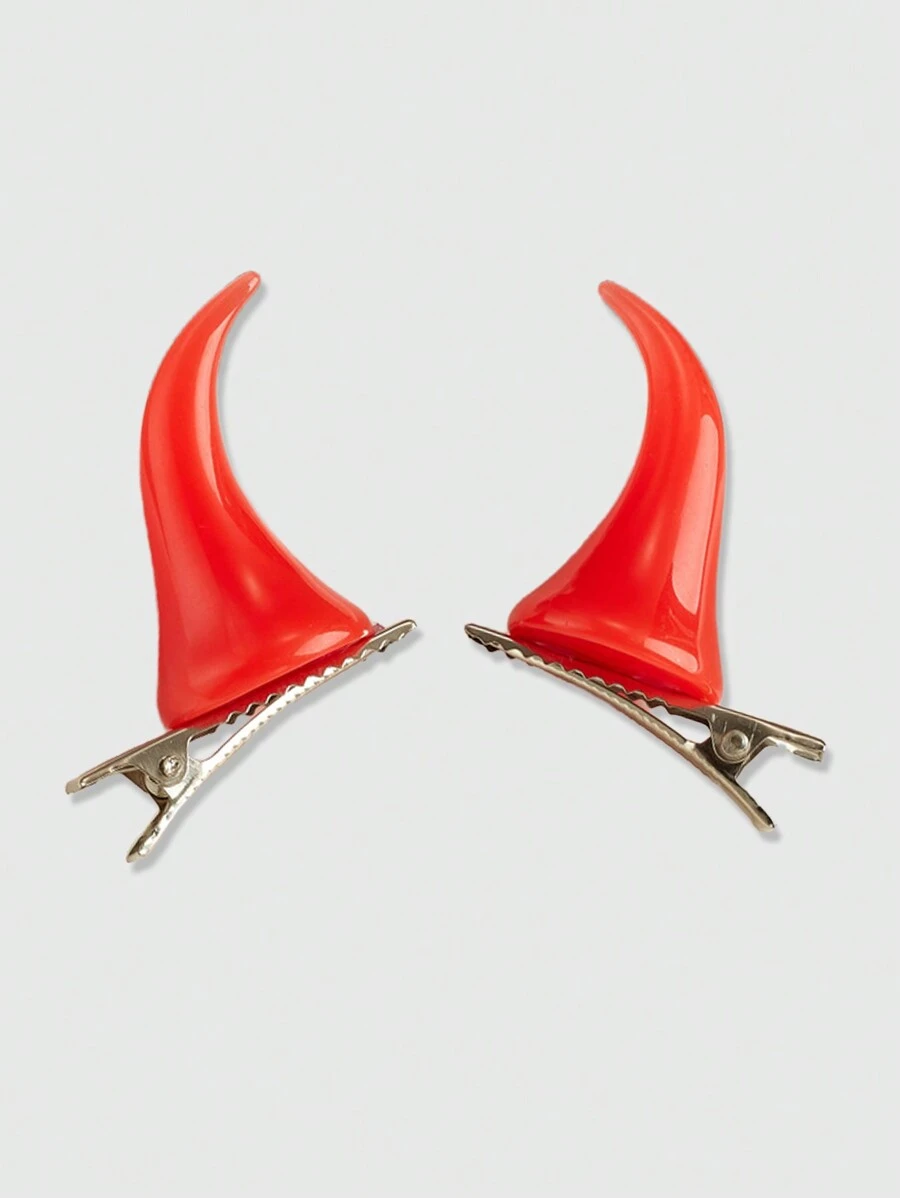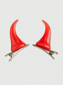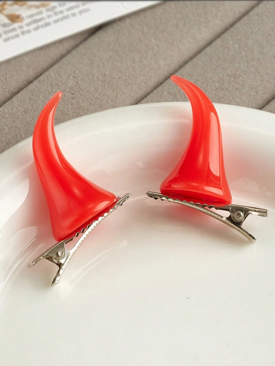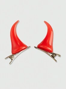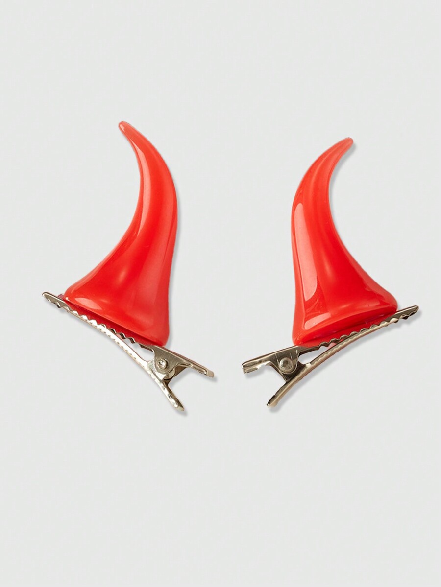 Goth 1pair Halloween Red Devil Horn Hair Clips, Perfect For Stage Decoration, Festivals And Parties
