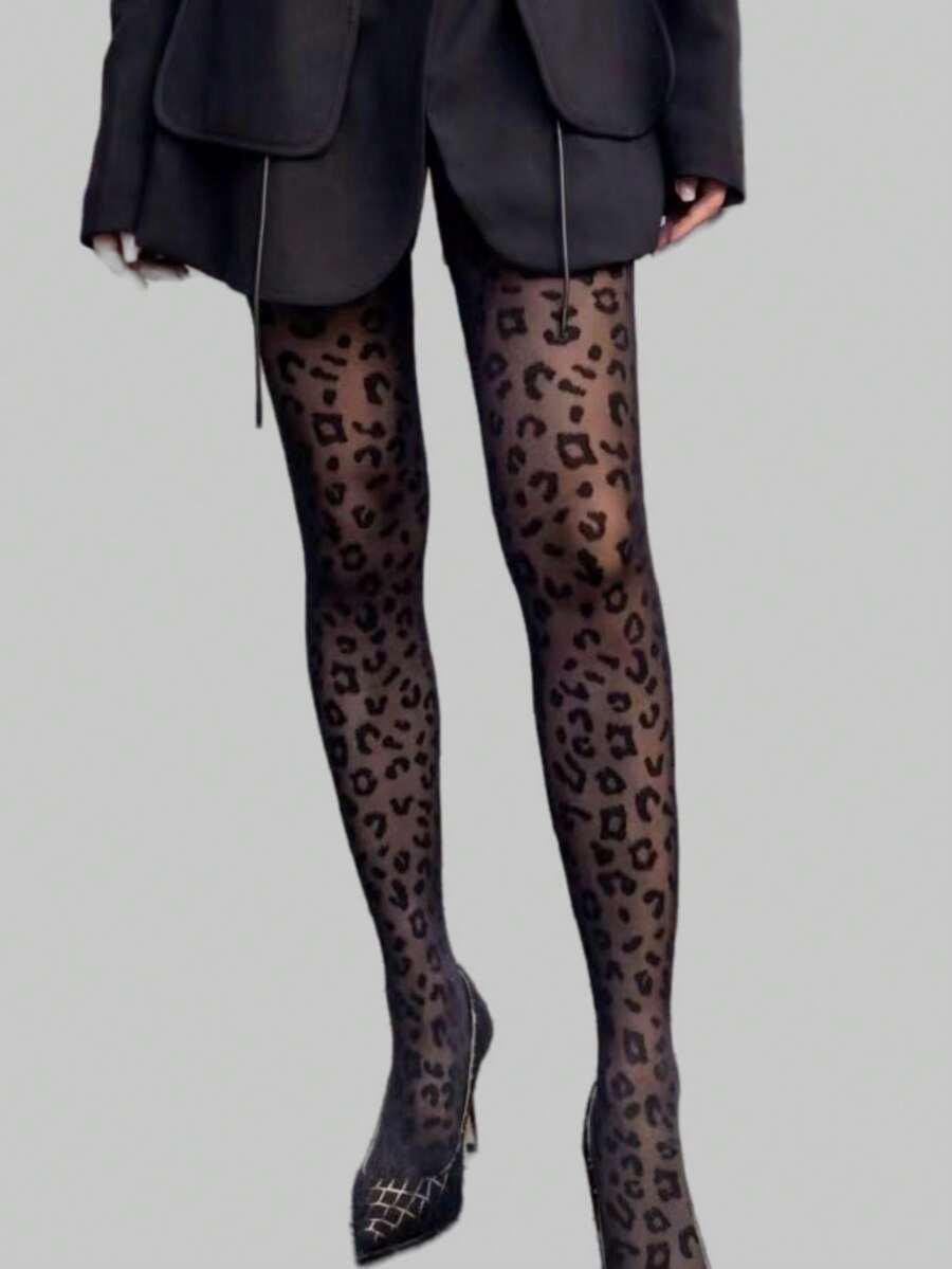 Goth 1pair Leopard Print Tights Stockings For Women, All Seasons