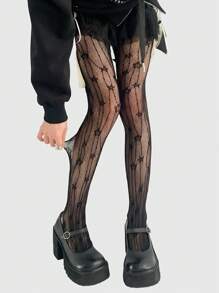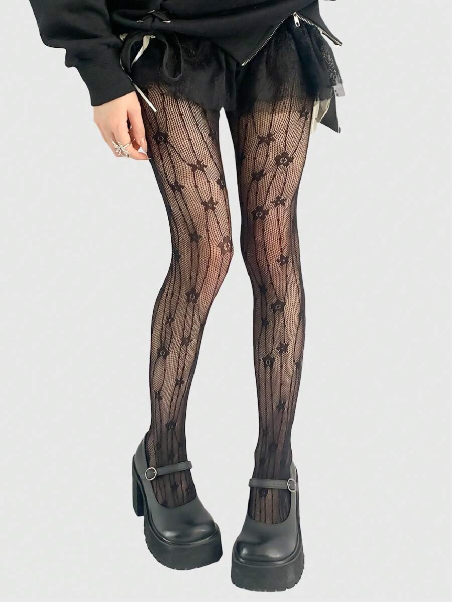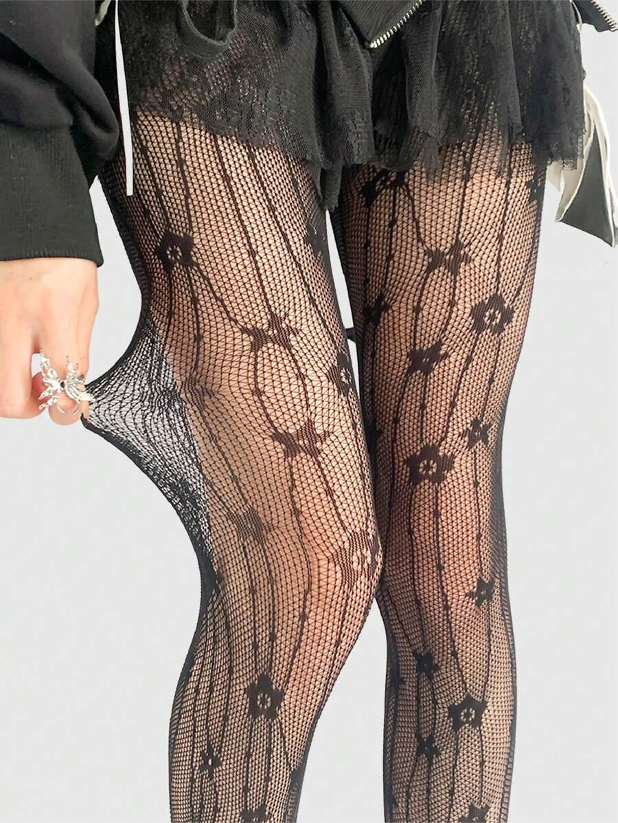 Goth 1pair Personalized Jacquard Vertical Striped Floral Fishnet Pantyhose