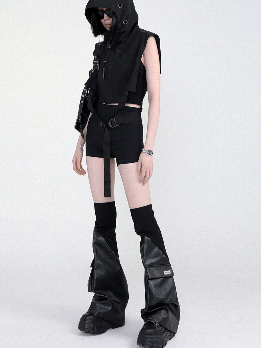 Goth 1pair Pu Leather Leg Sleeves With Pocket