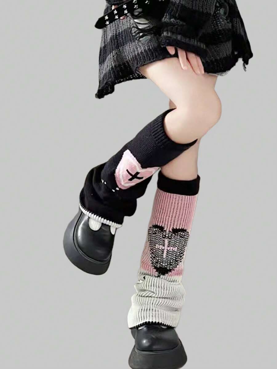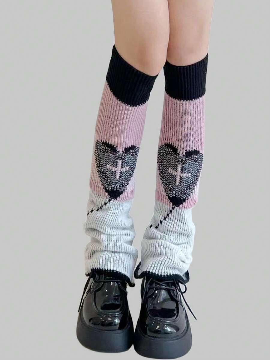 Goth 1pair Women Cross & Heart Pattern Leg Warmers