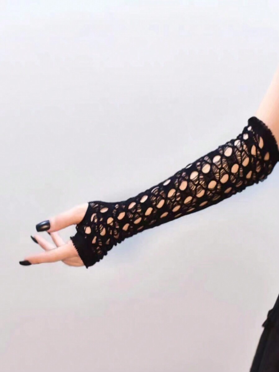 Goth 1pair Women Hollow Out Long Fingerless Arm Sleeves