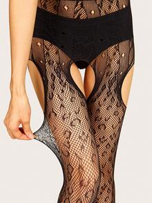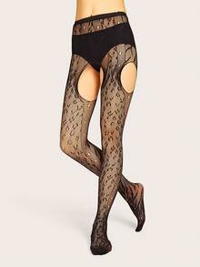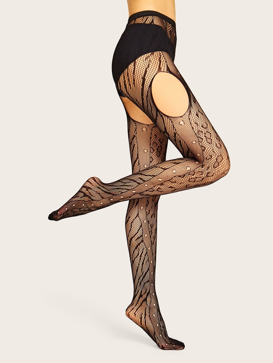 Goth 1pair Women Leopard Pattern Cut Out Fashionable Fishnet Crotchless Tights For Summer