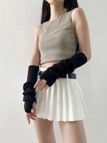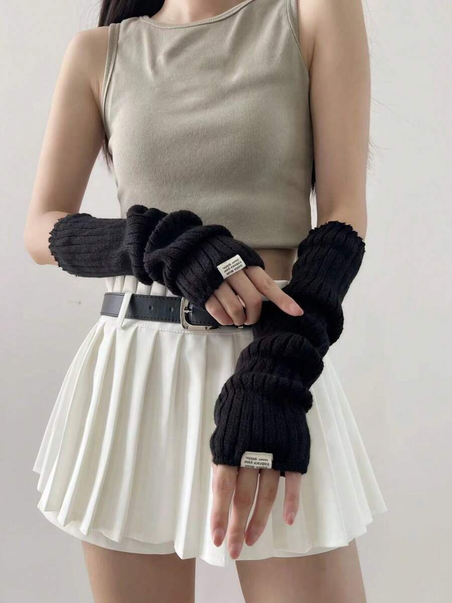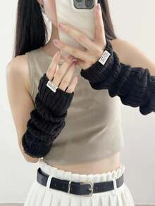 Goth 1pair Women Letter Patch Decor Arm Sleeves