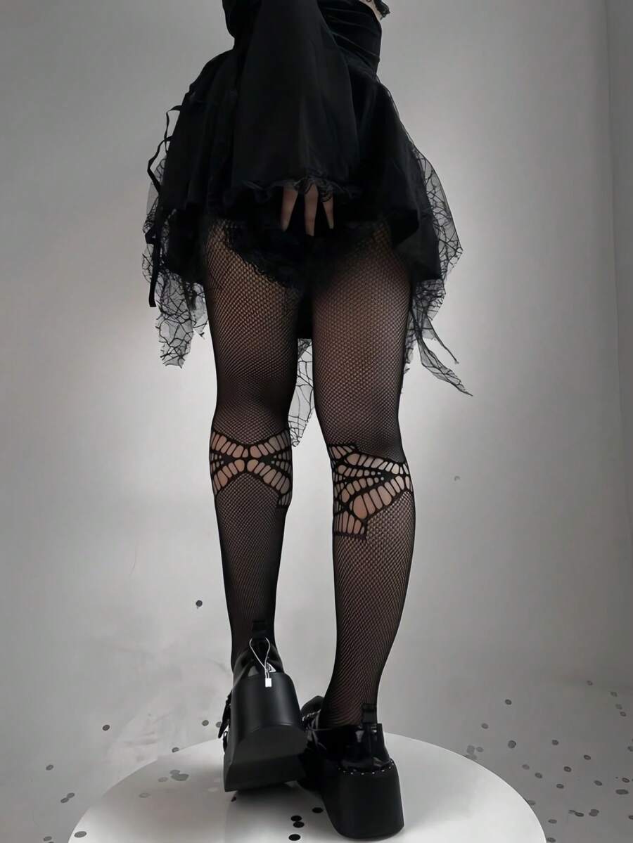 Goth 1pair Women Spider Pattern Fishnet Tights
